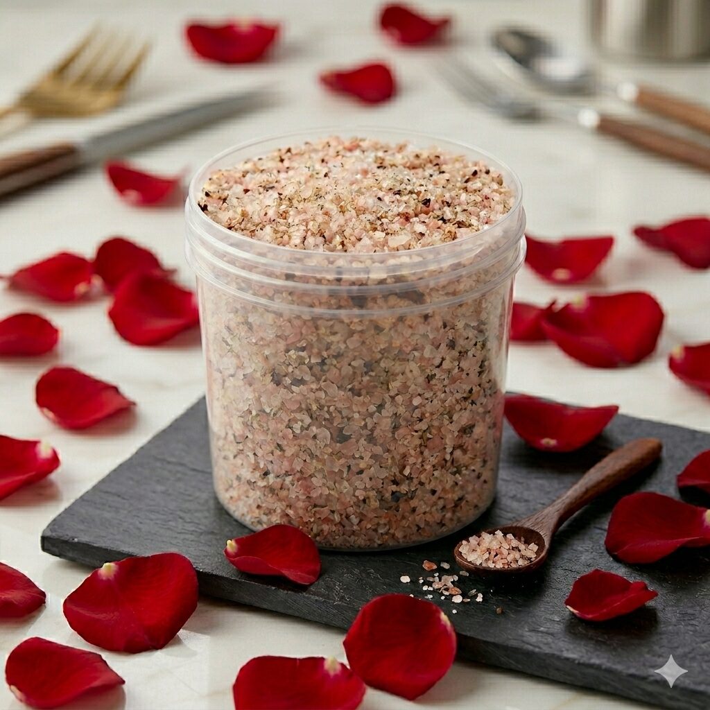 Sodium Chloride, Citric Acid, Magnesium Sulfate, Sodium Bicarbonate, Rose Petals, Prunus Amygdalus Dulcis Oil, Palm Olein